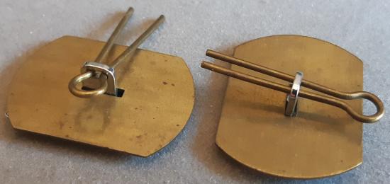 Nice pair of chromed collar badges, complete with brass backing plates and keeper pins.