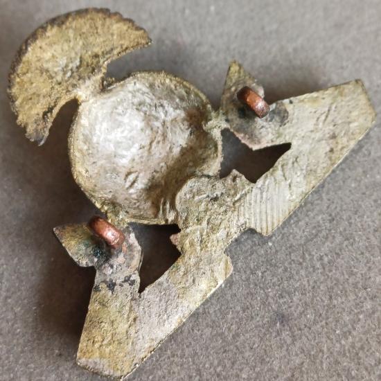 A great example of this circa WW1 field made sand cast brass hat badge. Reference is Kipling & King 1716 (Similar)
