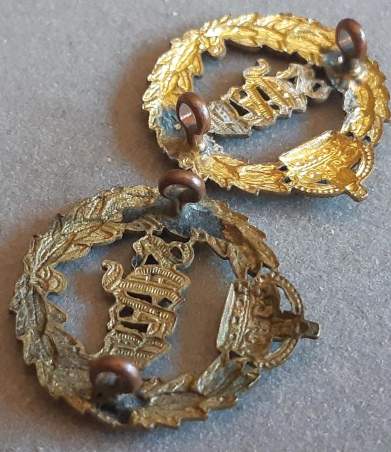 BRITISH - The Queen's Bays (2nd Dragoon Guards) K/C Pair Gilding Metal Collar Badges